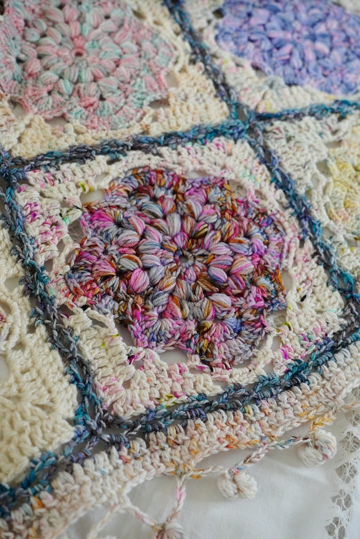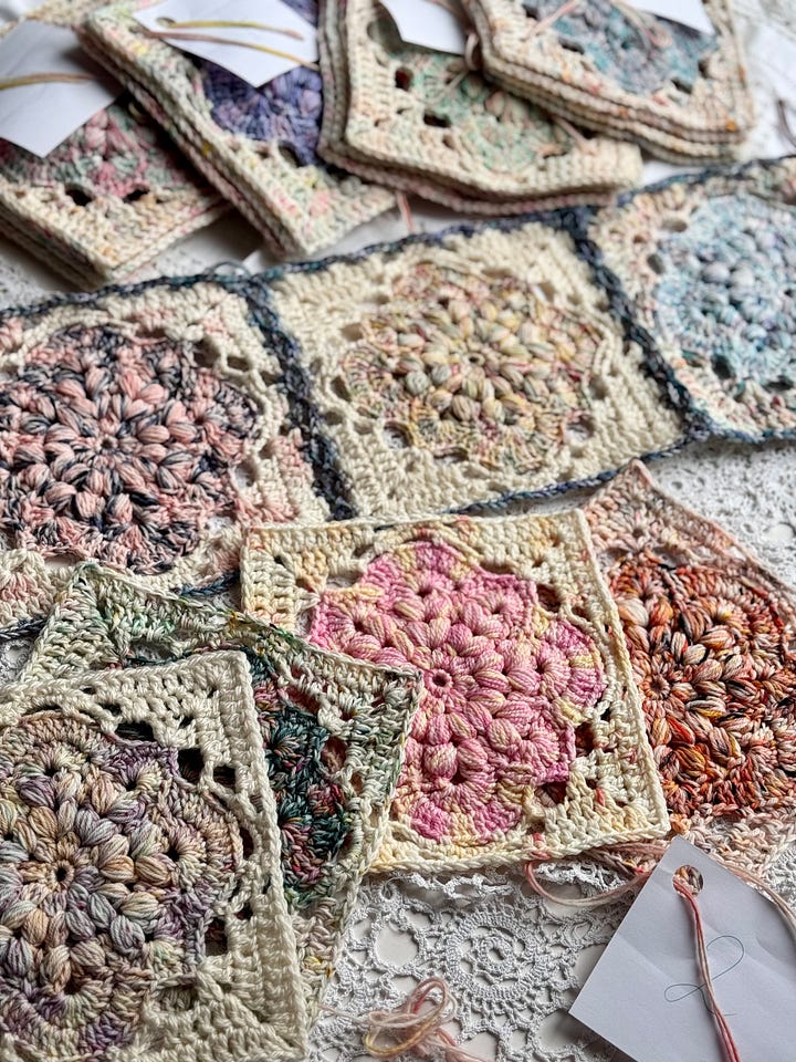 In something of record time (by my own terrible standards) the pattern didn’t take too long to pull together either. I have my usual written instructions in both UK or US terms. The whole pattern is charted as well, so if a more visual option is your preference, then I have you covered. I’ve also linked to a range of photo tutorials that I thought might be useful. I’m calling this an intermediate pattern, just because there are a few non basic stitches (puffs and bobbles) and some experience with Join As You Go would be useful, but otherwise it’s quite straight forward I think.