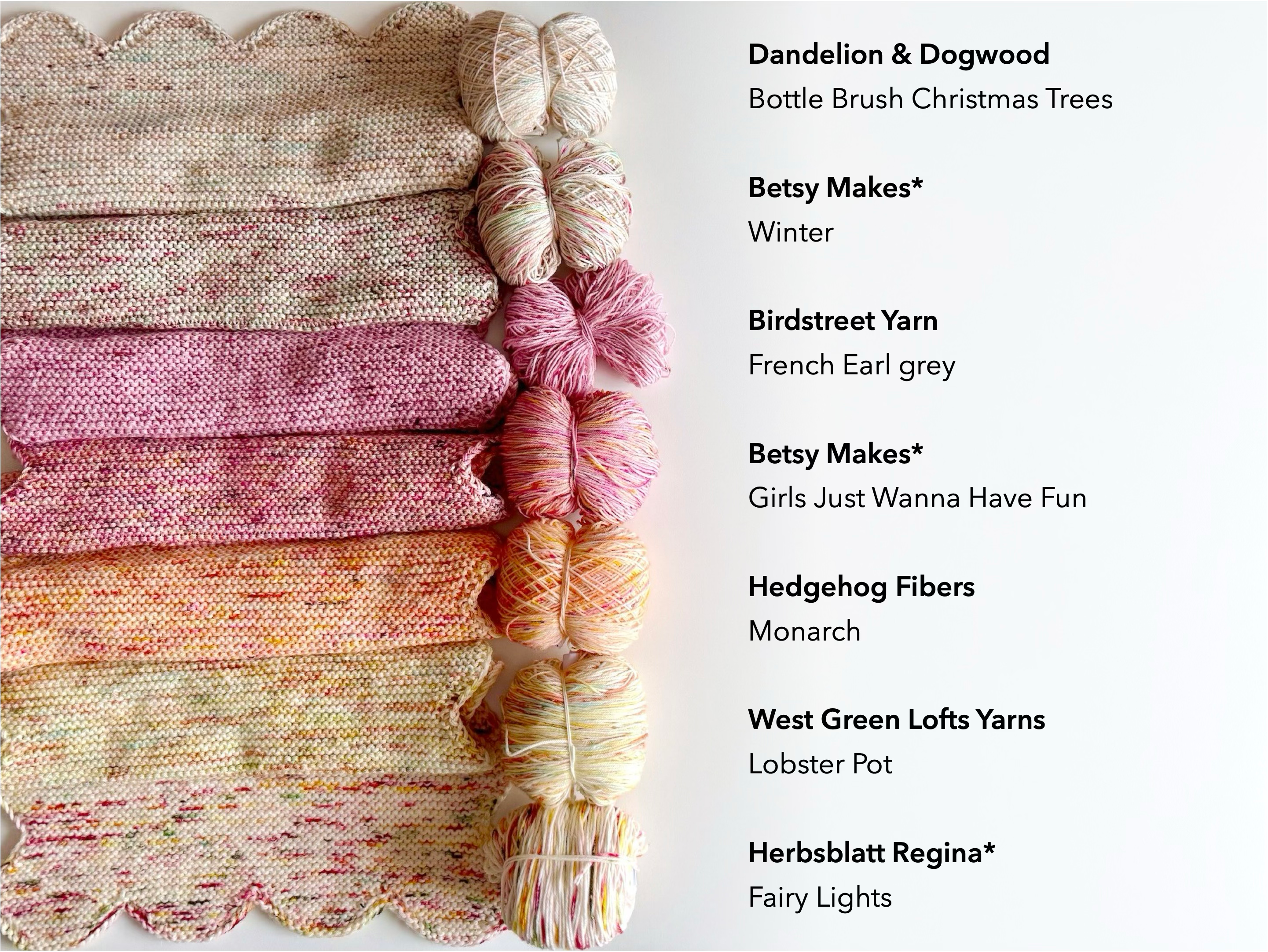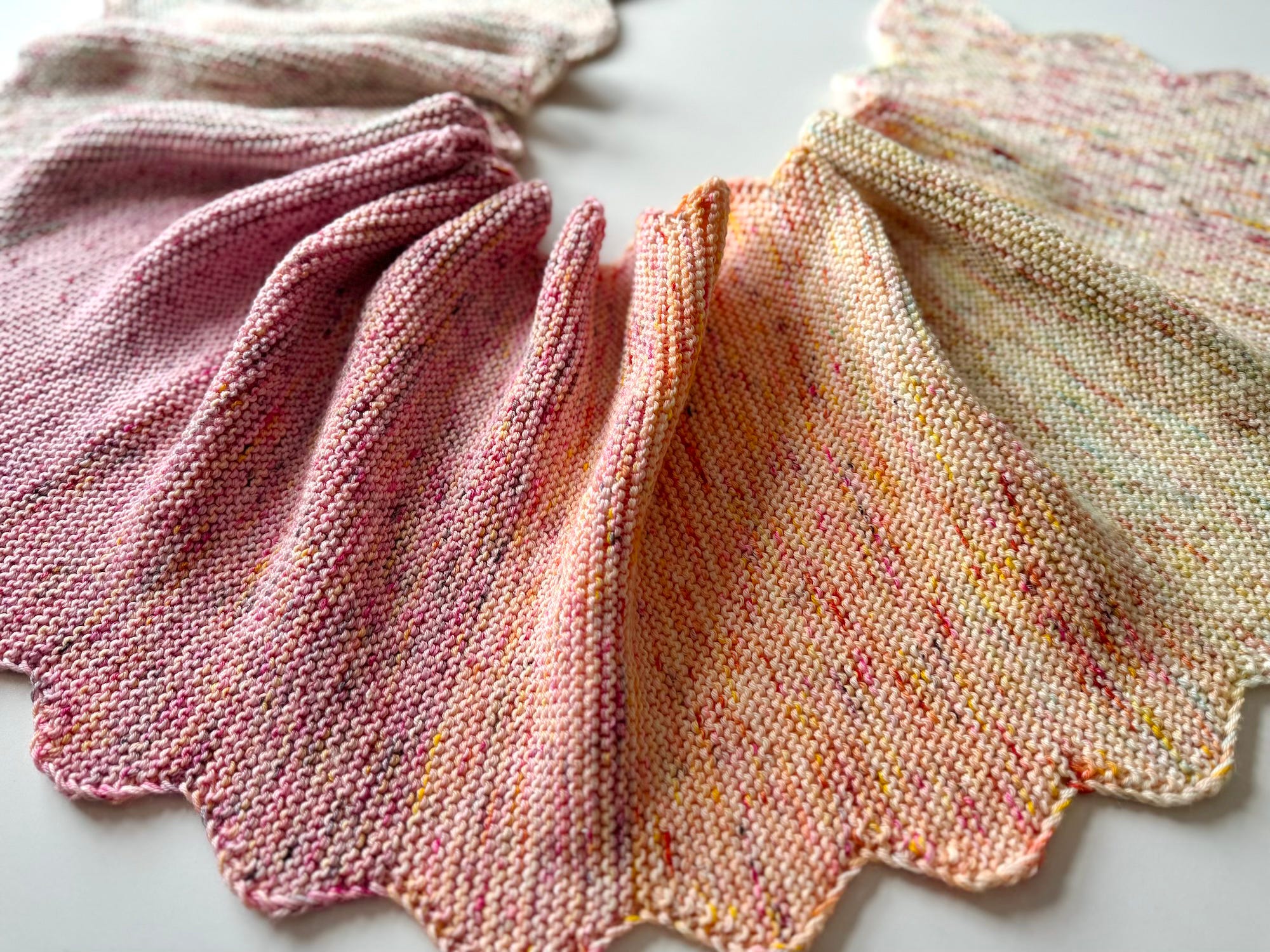 Notes: I made the ‘Midi’ size, but only knit a total of 20 scallops to fit the number of yarns and the colour changes I planned